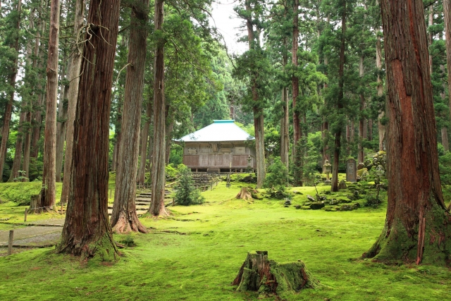 苔むした参道と杉木立に囲まれた境内は、まるで時が止まったかのような神秘的な空間。